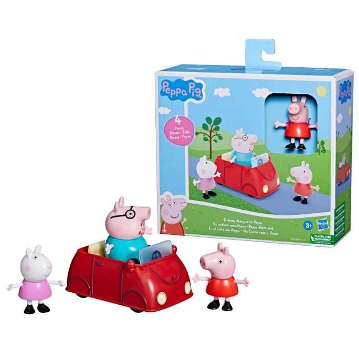 Les jeunes enfants et les fans de Peppa Pig (à partir de 3 ans) vont pouvoir imaginer des tas aventures avec Peppa et ses amis Ces coffrets Peppa Pig incluent des véhicules avec pièces mobiles pour que les enfants imaginent faire des promenades ou voler dans les nuages ! Chaque coffret inclut aussi 3 figurines : 1 figurine de Peppa de 7,5 cm et 2 membres de sa famille ou de ses amis Les figurines ont des bras et des jambes articulés, les enfants peuvent donc leur faire prendre différentes poses et les asseoir dans le véhicule