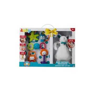 Le coffret cadeau idéal pour les enfants à partir de la naissance Il contient : 1 peluche Lapin toute douce de 30 cm de haut avec des bruits de bruissement dans les pieds et 5 hochets et anneaux de dentition aux formes, couleurs et textures différentes pour éveiller bébé et développer sa motricité fine Certains hochets sont équipés de grelots pour amuser bébé, tandis que d'autres possèdent des zones en gomme souple pour soulager bébé pendant la période délicate de la dentition