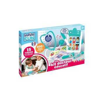 .Parce que tous les enfants rêvent d’être docteur… Parfait pour les premiers apprentissages grâce au bloc note électronique et ses 15 thèmes pour découvrir le corps humain, les animaux, les formes, les couleurs et bien plus encore. (animaux, couleurs, formes, notion de grandeur, quantités, fruits, légumes, vêtements, nourriture, transports, sport, gestes d'hygiène, parties du corps, instruments médicaux, maladies (rhume, mal au ventre, bras cassé...)