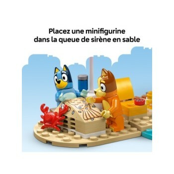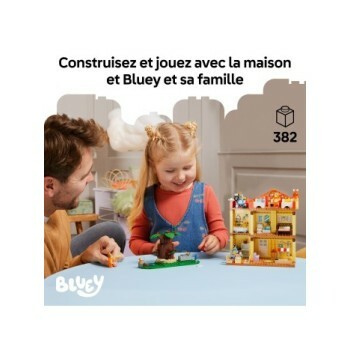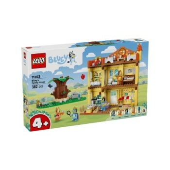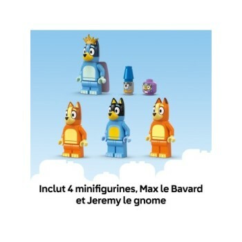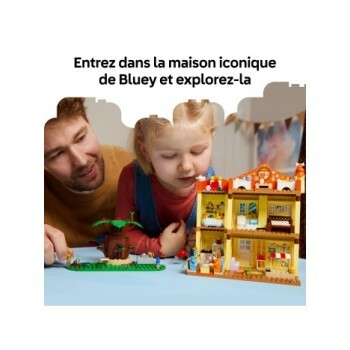 La maison de famille de Bluey (11203) regorge de fonctions, de jouets et de personnages de la série TV Bluey, et inspire aux enfants dès 4 ans une infinité de jeux de rôles imaginatifs avec Bluey et sa famille. La maison inclut 4 minifigurines (Bluey, Bingo, Chilli la Maman et Bandit le Papa) et des accessoires, dont une cape, une baguette magique et des loupes. Les pièces sont modulables pour plus d’options de jeu et incluent une maison de poupée, un piano et un étal d’aliments dans la salle de jeu, ainsi qu’un réfrigérateur, une cuisinière, une table et des chaises dans la cuisine. La chambre des parents jouxte une salle de bain, et dans la chambre de Bluey et Bingo se trouvent un tapis, une lampe et Max le Bavard. À côté, le trône de la Reine avec une théière, une tasse et une grenouille. Dans le jardin, un arbre, un hot-dog, une pizza, un robinet, Jeremy le gnome et un ballon. Les sets LEGO® 4+ incluent des instructions colorées et des briques de démarrage pour jouer rapidement.