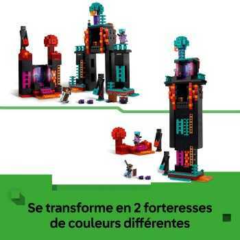Le jeu de construction La tour de l’Enderman (21279) ravira les garçons et les filles de 9 ans et plus qui aiment le jeu créatif et les objets de décoration inspirée de jeux vidéo. Sa conception modulaire offre une infinité d’options de jeu et d’exposition. Ce set LEGO Minecraft est une belle idée de cadeau d'anniversaire pour les enfants passionnés de jeux vidéo. La construction principale est une tour en forme d’Enderman avec un portail du Nether intégré dans la tête, un balcon sur chaque épaule et 2 pièces contenant un établi, une table d’enchantement et un coffre pour les perles de l’Ender. Des échelles permettent d’accéder aux jambes, les bras sont articulés et dehors se trouvent des décors de forêts biscornue et carmin. Le jouet inclut un défenseur dimensionnel, un pillard du royaume et 2 minifigurines d’Enderman, ainsi que 2 figurines d’Endermites et des armes, dont une arbalète Minecraft et un bouclier et une épée en netherite. La tour de l’Enderman se transforme en 2 forteresses facilitant l’action joueur contre joueur.