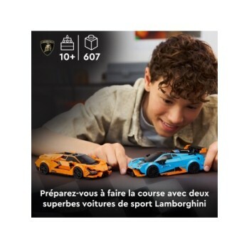 Les enfants découvrent le style, l’ingénierie et le design caractéristiques de Lamborghini avec le double jeu de construction Lamborghini Revuelto et Huracán STO LEGO Speed Champions (77238). Ce kit de 2 voitures de course LEGO à construire et exposer inspire de nombreuses histoires palpitantes. Ce set est également un superbe cadeau pour les garçons, les filles dès 10 ans et les adultes collectionneurs. Avec son moteur V12, la Revuelto est le modèle le plus puissant du constructeur automobile italien. Quant à la Huracán STO, elle est conçue pour la route et la piste. Ces deux maquettes recréent des détails Lamborghini authentiques, dont les prises d’air, les ailerons et les optiques futuristes en Y. Chaque bolide s’accompagne d’une minifigurine de pilote inspirant un jeu de rôle créatif. Avec les kits LEGO Speed Champions, enfants et fans de voitures peuvent construire des répliques de véhicules mythiques. Chaque maquette LEGO peut être créée en suivant les instructions papier ou l’application LEGO Builder.