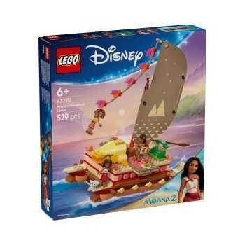 Pars à l’aventure au-delà de l’horizon avec Vaiana et son équipage ! Monte à bord du bateau d’aventure de Vaiana inspiré du film d’animation Vaiana 2 de Disney, avec Loto, Moni et Pua. Hisse la belle voile en tissu et utilise le lei hulu pour trouver le vent. Regarde Pua ! Il fait la sieste sur le pont. Trop mignon ! Sous le pont se trouvent les espaces pour Loto et Moni, ainsi que des provisions.