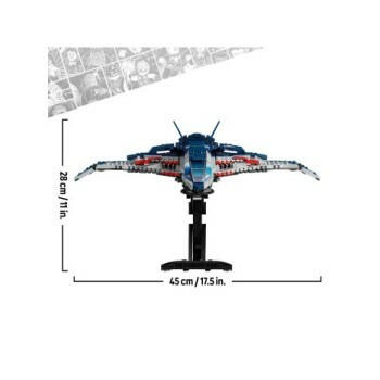 Le Quinjet d’Avengers : L’Ère d’Ultron LEGO ǀ Marvel (76325) est un set collector que les enfants peuvent construire, utiliser dans leurs jeux et exposer comme objet de décoration. Ses détails authentiques et les minifigurines d’Avengers font de ce jouet de construction LEGO ǀ Marvel un superbe cadeau pour les enfants et les fans de super-héros dès 12 ans. Cette réplique du Quinjet à construire inclut 5 minifigurines : Black Widow avec sa moto, Iron Man, Quicksilver, Ultimate Ultron et Hawkeye avec son arc et sa flèche. Les minifigurines peuvent être fixées sur différents endroits de l’avion, doté d’un cockpit ouvrant, de 2 lance-tenons à l’avant et d’un espace de rangement pour les armes de Black Widow et l’arc d’Hawkeye. La porte arrière s’ouvre pour charger la moto. Un support pivotant et amovible permet d’exposer cet avion mythique à 360°. Pour ajouter une expérience numérique, l’application LEGO Builder intuitive et ludique propose des outils de zoom, rotation 3D et suivi de la progression.