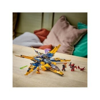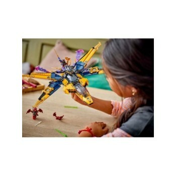 Pars à l’aventure avec Arin et Ras aux commandes de leur super avion tempête, dans les cieux instables du monde NINJAGO® ! Aide Arin à tirer avec les canons à ressort de l’avion et Ras à détacher son drone volant à tête de dragon équipé d’armes. Ensemble, ils doivent viser et vaincre le Guerrier draconique et le dragon à leur poursuite dans les nuages. Qui remportera ce combat aérien féroce ?