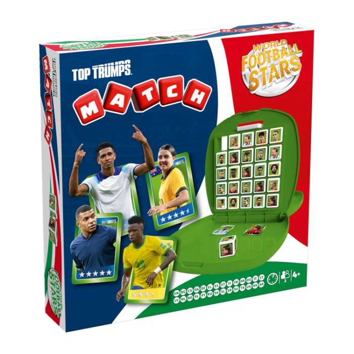 Joue avec tes joueurs de foot préférés du monde entier, et sois le premier à aligner 5 cubes identiques pour gagner la partie. Un jeu à 2 où il faut allier observation et tactique.