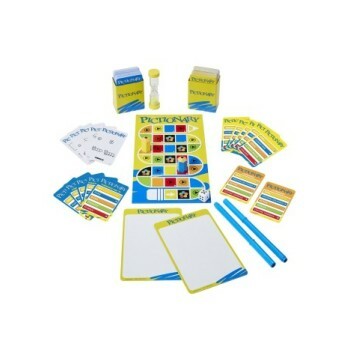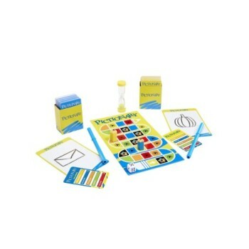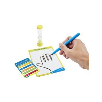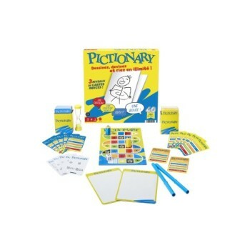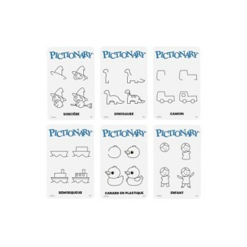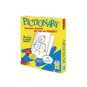 Pictionary adapté aux adultes et aux enfants. Inclus 224 en 3 paquets : adultes, enfants, et « apprendre à dessiner », une ardoise, des feutres.