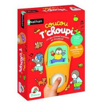 Des petits poissons au bon roi Dagobert, 16 comptines à écouter et à chanter encore et encore avec T’choupi ! En mode découverte, l'enfant appuie sur le bouton et écoute la comptine : "Petit escargot porte sur son dos sa maisonnette…" En mode questions, le jeu demande : "Trouve la carte : “T’choupi joue aux marionnettes" L'enfant cherche la carte, si la réponse est bonne “Bravo”! il peut écouter la comptine Un jeu d'éveil musical adapté aux petites mains Avec 3 modes de jeu