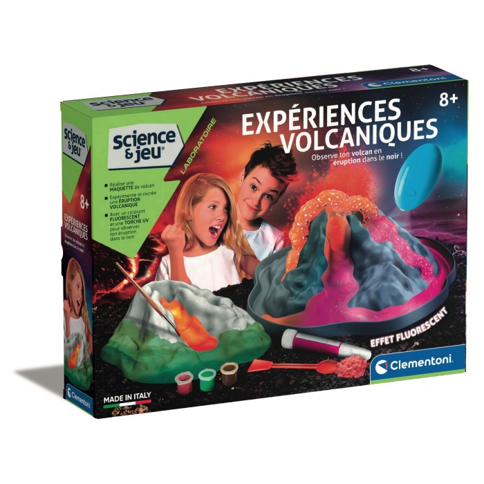 Un volcan à façonner pour comprendre sa forme, son origine et son fonctionnement. Une poudre spéciale incluse permettra de recréer des éruptions phosphorescentes.