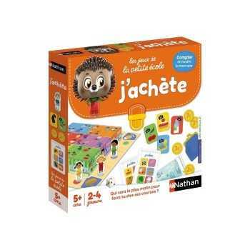 Sois le premier à avoir acheté tous les articles de ta liste de courses ! Retourner le dos de la boîte : c’est le marché et ses 6 boutiques : primeur, boulangerie pâtisserie, crèmerie, poissonnerie, boutique de jouets et fleuriste Un joueur tient la caisse, et les autres, munis de 16€ devront réaliser tous leurs achats en déjouant les pièges (tirelire cassée) !
