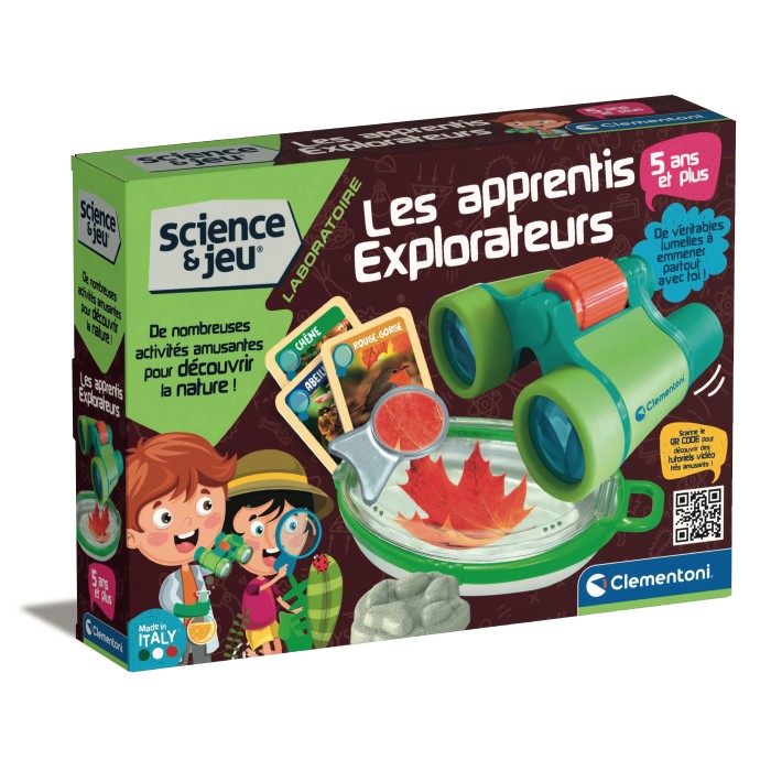 Un coffret pour faire découvrir la nature à l’enfant : des jumelles d’observation, un observatoire à insectes, des moules pour reproduire des empreintes d’animaux en plâtre, des cartes d'information…