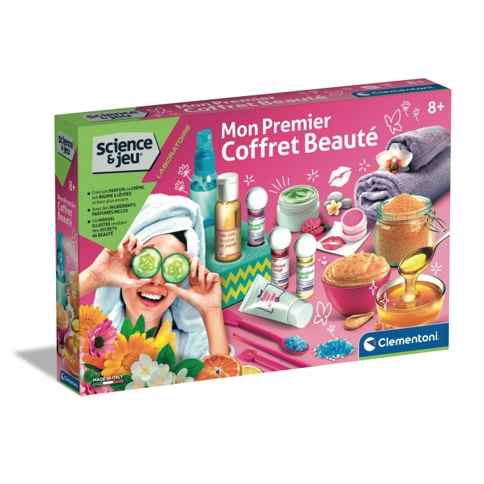 Le coffret contient des moules pour faire des savons en forme de coquillages, de papillons et de soleils et des vaporisateurs pour pouvoir vaporiser sur toi tes propres créations parfumées.