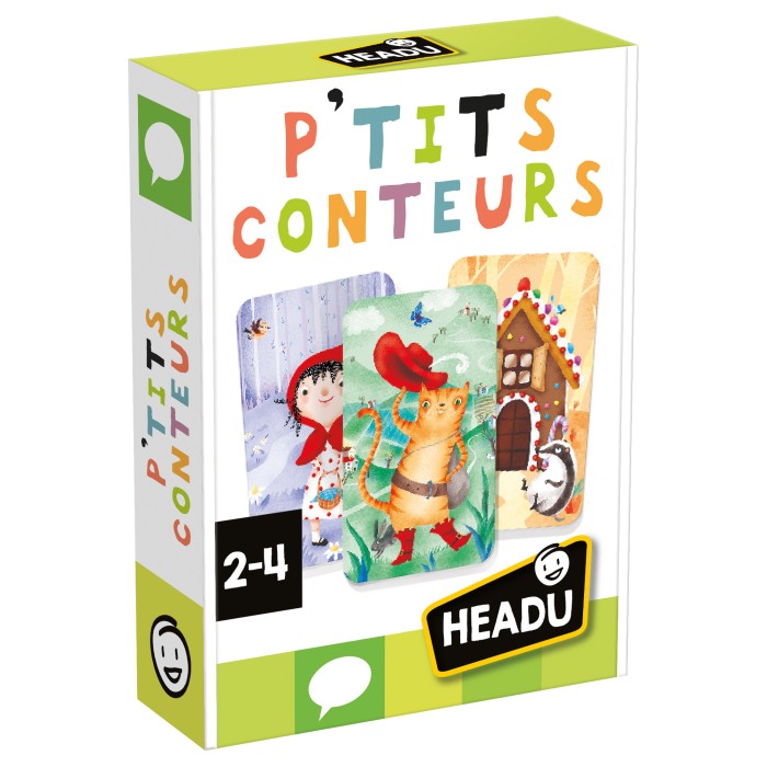 Veux-tu jouer avec le Petit Chaperon Rouge, Cendrillon, le Chat Botté et Hansel et Gretel ? Voici un set de cartes illustrées pour découvrir cinq fables célèbres et inventer une foule d’histoires originales en mélangeant les personnages !