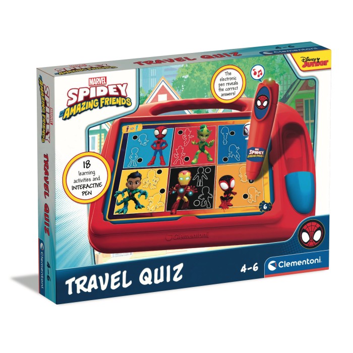 Un jeu éducatif avec Spidey pour découvrir les formes, les couleurs, les chiffres, l'espace et les dimensions à travers de nombreux quiz. Le stylo indique si les réponses sont justes.