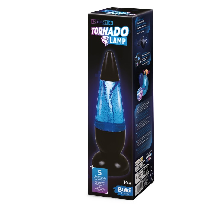 Une lampe tornade de 24 cm, idéale pour décorer la chambre. Verse de l’eau et ajoute les paillettes. La lampe possède une LED qui change de couleurs et reproduit une tornade sous-marine. Inclus: découvre 5 expériences surprenantes sur l’eau. Notice illustrée en couleurs. Fonctionne avec une prise secteur incluse. Dès 14 ans.