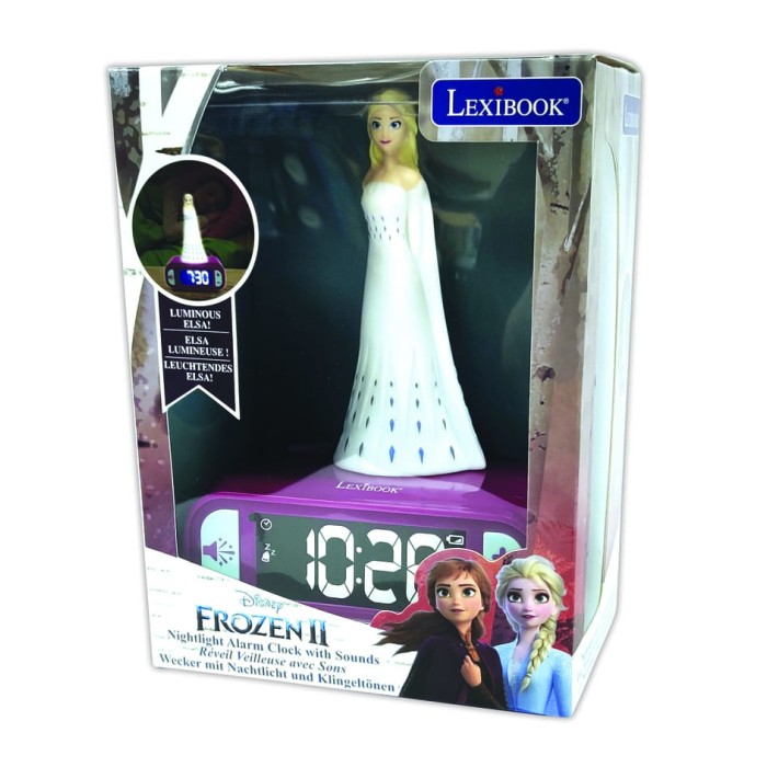 * UN RÉVEIL SUPER COOL POUR LES ENFANTS AVEC LA REINE DES NEIGES * ÉCRAN LCD RÉTRO-ÉCLAIRÉ QUI FACILITE LE SOMMEIL. * BOUTON POUR JOUER DES EFFETS SONORES DE FROZEN * ALARME AVEC VOLUME RÉGLABLE ET UN CHOIX DE SONNERIES INSPIRÉES DE FROZEN. PARFAIT POUR SE RÉVEILLER PRÊT À L'ACTION ! * FACILE À UTILISER : L'ALARME PEUT ÊTRE ARRÊTÉE PAR UNE SIMPLE PRESSION SUR LE HAUT DE L'HORLOGE OU SUR LE PERSONNAGE D'ELSA. * FONCTION "SNOOZE". * ALIMENTATION ÉLECTRIQUE : 3 PILES AA / LR6 (NON INCLUSES) AVEC INDICATEUR DE PILES FAIBLES. * DIMENSIONS : 13,5 X 9 X 18,2 (H) CM
