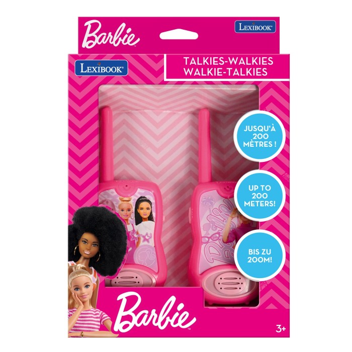 * UNE PAIRE DE TALKIES-WALKIES POUR GARDER LE CONTACT EN TOUTE ÉLÉGANCE AVEC VOS AMIS ! * PORTÉE DE TRANSMISSION : JUSQU'À 200 MÈTRES EN EXTÉRIEUR (DÉPEND DU RELIEF ET DES CONDITIONS MÉTÉOROLOGIQUES). * UNE BELLE IMAGE DE BARBIE. * ANTENNE DURE ET 2 CANAUX DE COMMUNICATION. * CLIP DE CEINTURE.