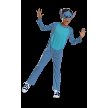 Combinaison bleue avec ouverture au dos accompagnée du masque de Stitch en feutrine
