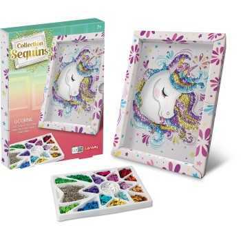Crée un tableau scintillant en sequins d’une magnifique licorne. Un compartiment à sequins t’aidera à ranger les sequins ! Dès 7 ans.