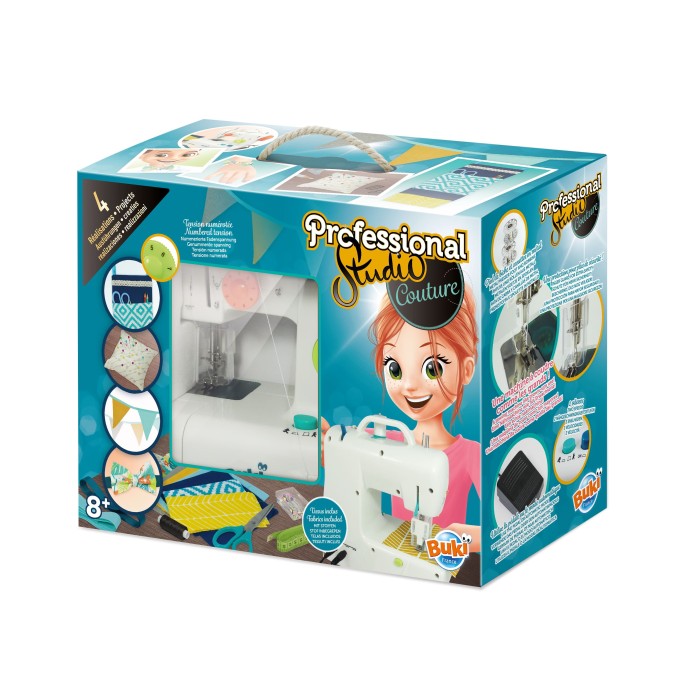 Une machine à coudre idéale pour les débutants ! Maniable, facile à utiliser grâce aux deux vitesses et au réglage de la tension numéroté ! Apprends à coudre 4 projets tendances : guirlande de fanions, coussin à aiguilles, nœud papillon et vide-poche mural ! De nombreux accessoires dont des canettes en métal et des aiguilles de rechange pour la machine sont fournis. Les réalisations et les bases de la couture sont expliquées pas à pas dans une notice illustrée agrémentée de flashcodes pour accéder à des tutoriels vidéo ! La machine fonctionne avec adaptateur secteur inclus. Notice illustrée en couleurs. Dès 8 ans.
