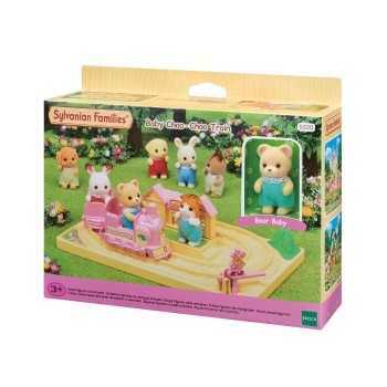 Ce prêt à jouer contient Jason, le bébé ours Les bébés partent en balade dans le train qui peut être poussé à la main sur les rails La locomotive et le wagon peuvent accueillir chacun un bébé. La barrière du passage à niveau est mobile
