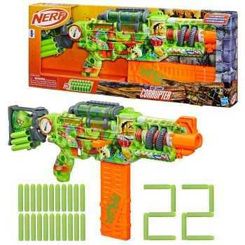 Nerf Zombie Corrupter On est prêt pour les compétitions avec ce blaster décoré de graffitis avec l'apparence d'un équipement conçu par des chasseurs de zombies ! Charger On insère les fléchettes dans le chargeur, puis on insère le chargeur dans le blaster On recharge et on continue à jouer Avec les 22 fléchettes incluses, on en a suffisamment pour recharger le blaster et continuer à jouer