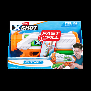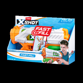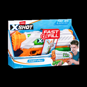Le XSHOT Fast-Fill à un remplissage rapide et te permet de remplir ton pistolet à eau en une seconde et de reprendre le combat bien avant tes adversaires. Il te suffit de le plonger dans l'eau, le remplir et le fermer grâce à la technologie de fermeture rapide. Il tire jusqu’à 10 mètres et tu peux le remplir n’importe où. Le pistolet à eau indispensable pour l'été !