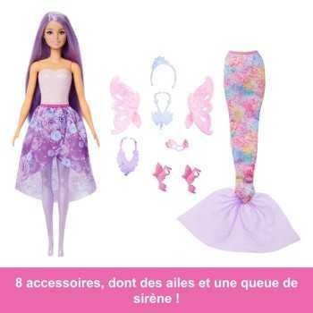 Fée, altesse ou sirène, Barbie se transforme à volonté pour s’adapter aux histoires. Des tenues et des accessoires sont inclus avec la poupée.