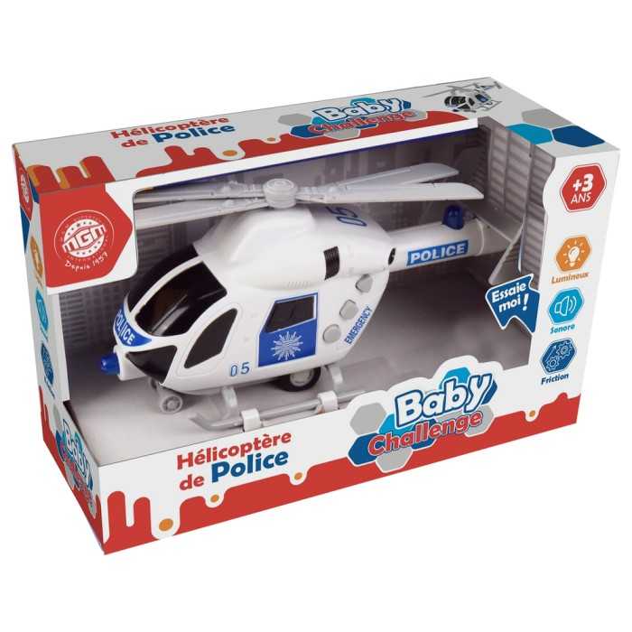 Hélicoptère de police 21cm Baby Challenge à friction lumineux et sonore.