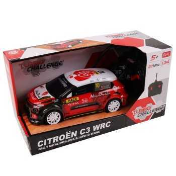 Prenez le départ avec cette Citroën C3 WRC sous licence officielle ! Facile à piloter grâce à sa télécommande 2,4 GHz (portée 20 m), elle atteint 8 km/h tout en restant stable et maniable. Résistante aux chocs, utilisable en intérieur comme en extérieur. Fonctionne avec 3 piles AA pour la voiture et 2 piles AA pour la télécommande. Un cadeau idéal pour les jeunes passionnés de rallye !